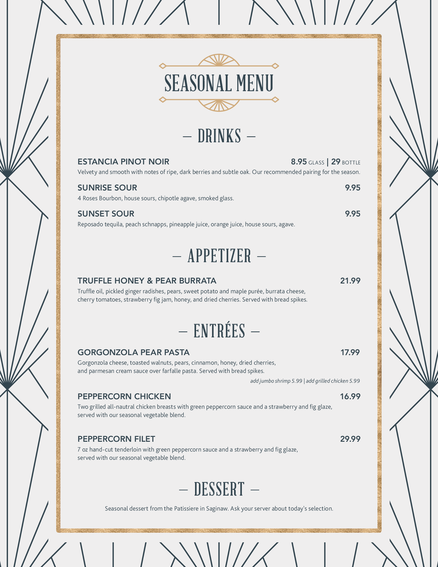 At Harvey's we're focused on elevating your experience. From our chef-created menu and frequent seasonal menu development; to our hand-crafted original cocktails, right down to our atmosphere. Our goal is to provide an elevated dining experience for any occasion.